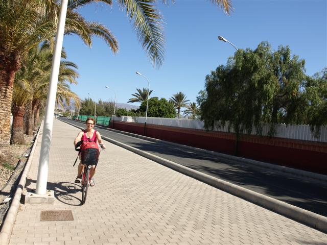 While we were at the shopping centre, we noticed a bike-hire place. We decided to see what the prices were like (expecting them to be high), and were amazed it was only SEVEN Euros for a whole day (and I DO mean 24 hours) each! That was it - we went back the next day and hired two 'city bikes'. They are like those bikes you see around Oxford and Cambridge. You don't get a helmet if you hire this type of bike as you are not supposed to go on roads outside the confines of the 'city' (Maspalomas, Meloneras, Playa Del Inglis), but you DO get a basket on the front (and a bell). Not sure why no helmet, but maybe accidents don't happen in the city????